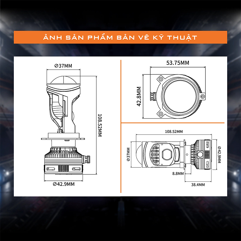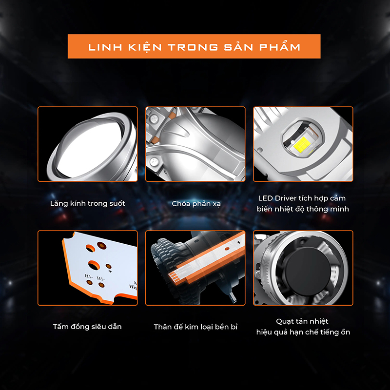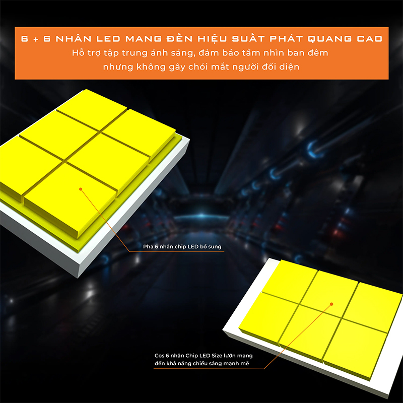 - Bi led MiNI H4 trang bị 6+6 nhân led mang đến hiệu quả phát quang cao,hỗ trợ tập trung ánh sáng, đảm bảo tầm nhìn ban đêm,nhưng không gây chói mắt xe đối diện.