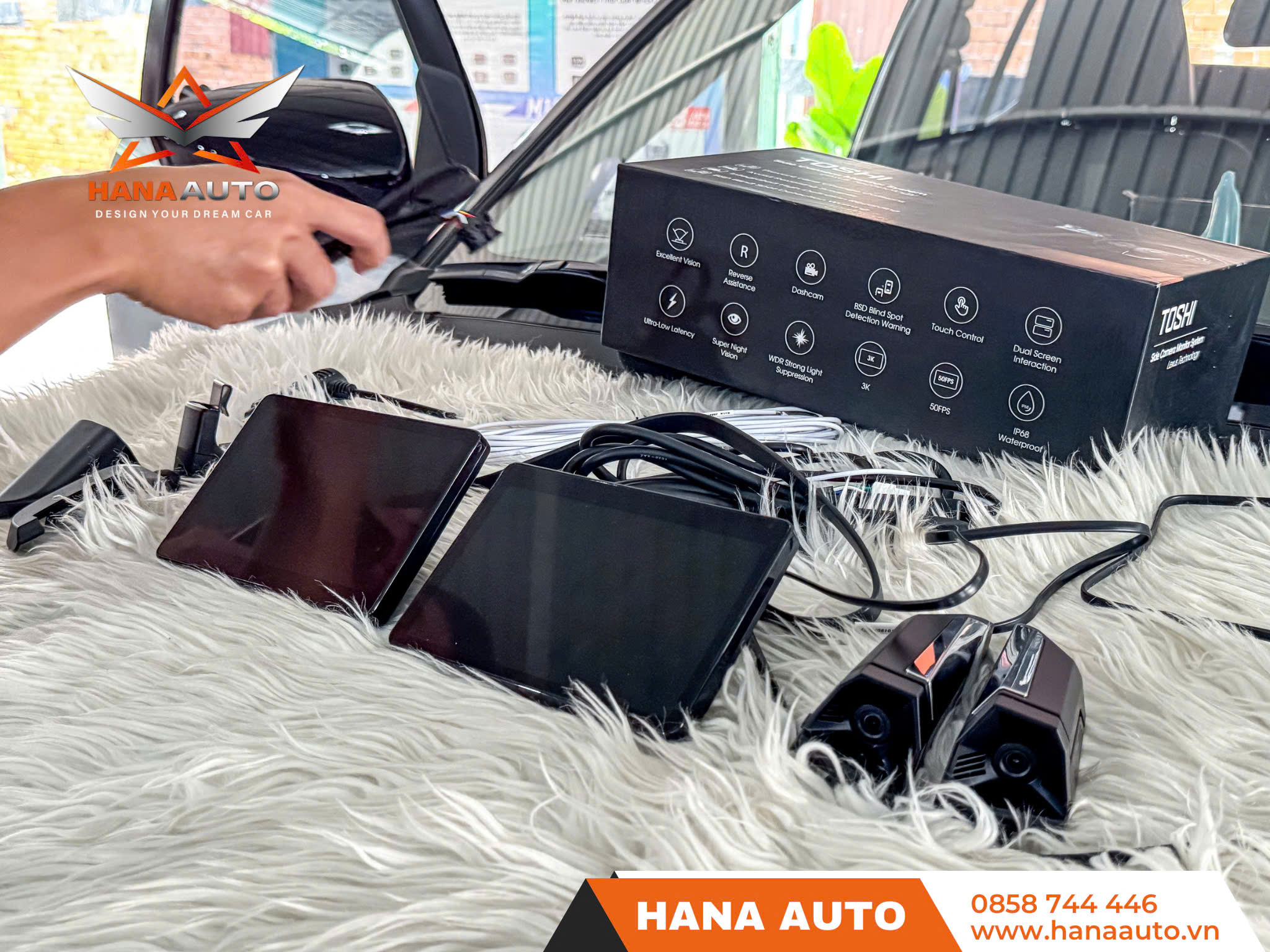 Hana Auto lắp đặt chính hãng camera gương hậu điện tử Toshi tại khu vực Bình Dương. Với tay nghề kỹ thuật viên chuyên nghiệp cùng dịch vụ chu đáo, nhiệt tình, hỗ trợ lắp đặt tận nơi miễn phí. Quý khách hàng có thể tin tưởng lựa chọn HANA AUTO để lắp đặt gương điện tử tại Bình Dương cho xế yêu của mình.